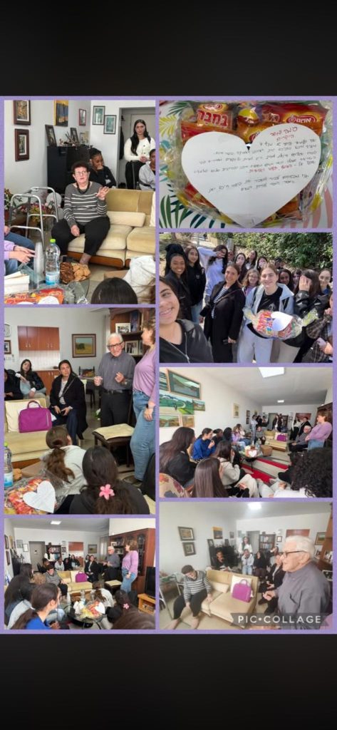 *ז׳4* ו-*ז׳7* הגיעו לבית האבות “בית בלב” עם חלות, עוגות ועוגיות שהוכנו בבית, יחד עם *ההורים* המקסימים.